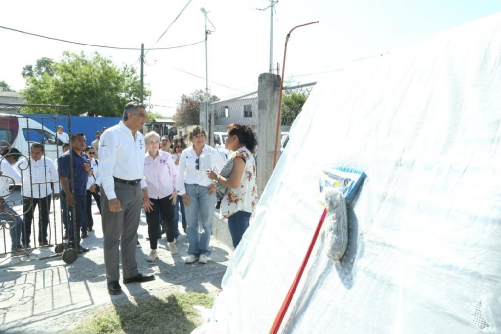Reynosa, Tam. – El gobernador Américo Villarreal Anaya y la presidenta del DIF Estatal, doctora María de Villarreal, encabezaron este sábado una jornada más de entrega de apoyos a familias que fueron afectadas por las lluvias en la colonia Juan Escutia, de Reynosa.