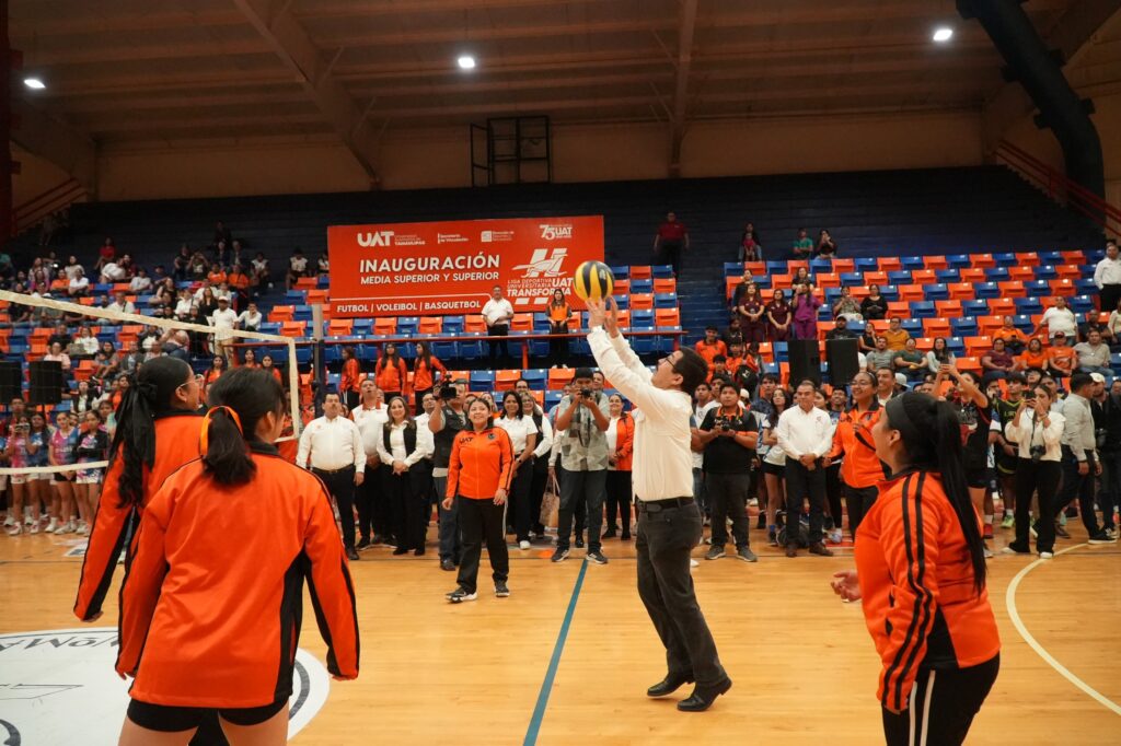 • Con la participación de más de 70 equipos de instituciones de bachillerato y nivel superior de la zona centro del estado, el rector Dámaso Anaya Alvarado inauguró el Primer Torneo de la Liga Deportiva Universitaria “UAT Transforma” que se desarrolla en las disciplinas de voleibol, basquetbol y fútbol, en las categorías varonil y femenil.