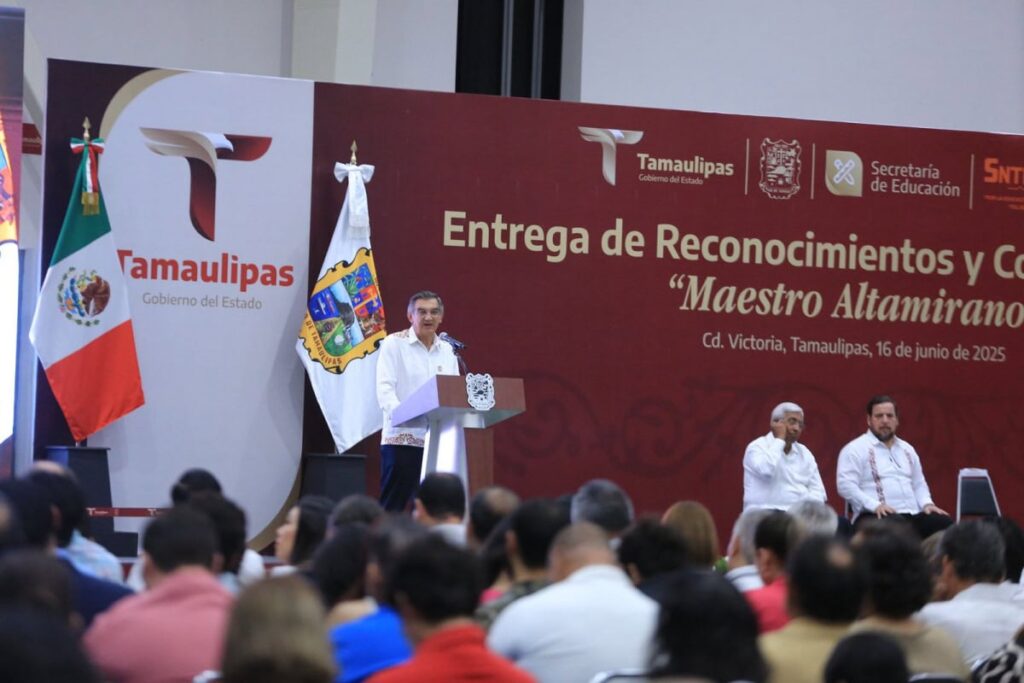 Y agregó: “Su amigo, el gobernador del Estado, seguirá este ejemplo en dicha alianza con las y los maestros de Tamaulipas, y me llena de orgullo que la fuerte herencia docente que hay en mi familia esté hoy también reconocida, por lo que seguiremos juntos en este camino de mejora continua, para ser actores preponderantes en la transformación de nuestra sociedad, que incluyen avances digitales, cambios en los planes y programas educativos, así como la inclusión de iniciativas escolares propuestas por nuestra presidenta Claudia Sheinbaum Pardo”.