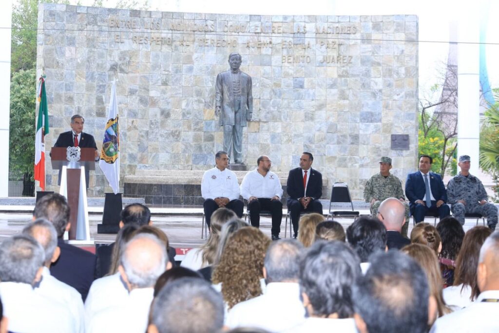 «Agradezco mucho a todos los magistrados, a todo el Poder Judicial que han acompañado esta administración del Ejecutivo en estos tres años de ejercicio, que han mostrado la voluntad y la aceptación de la voluntad popular para llevar a cabo esta transformación», expresó el mandatario estatal durante la ceremonia cívica de honores, en la explanada del Supremo Tribunal de Justicia.